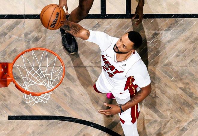 阿德巴约打铁怒抢17板,鲍威尔24分韦尔22+12+4封盖,热火擒篮网